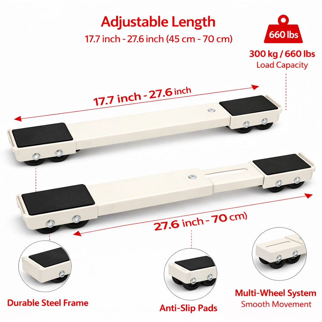 Heavy pieces stop feeling fixed. A slight lift is all it takes to place the rollers, then everything moves with control and stability. Navigate corners, adjust positions, and reposition large items without resistance. Built for smooth movement and floor-protective wheels that keep every surface untouched.